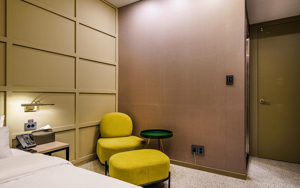 65인치 스마트TV로 넷플릭스 시청이 가능한 코너 디럭스 객실입니다.